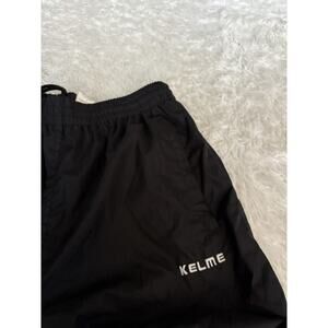 This is a fantastic, super comfortable, lightweight and versatile Kelme men's sz. L black "parachute" style activewear pants/joggers. Slightly water repellent and complete with bottom zippers.Normal signs of typical, gentle wear. No issues or problems. Nice pair!