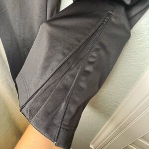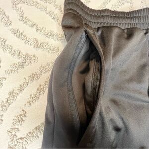 Never worn, but washed once. No stains or tears. Zipper on bottom of pant legs for easy on/off with cleats.
