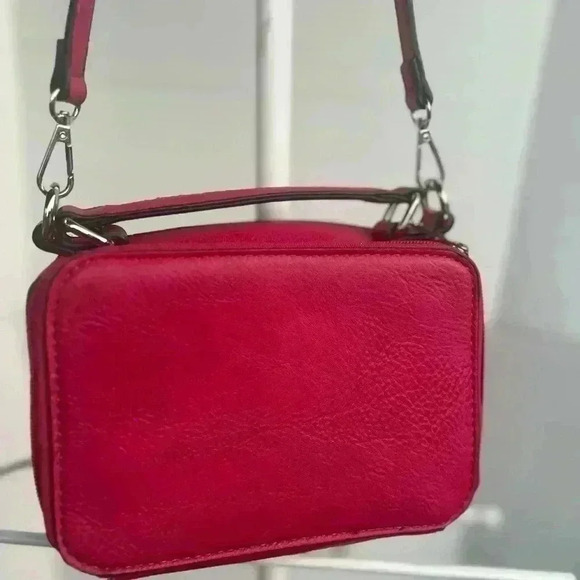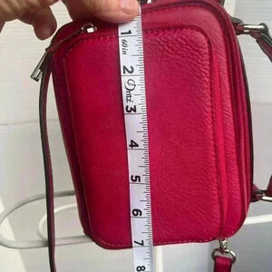 Named one of Oprah's Favorite Things 2021! Inspired by a camera bag, the Kelsey bag can organize everything you need! This structured design and lively colors pair well with both classic and youthful looks. Named after an up-and-coming designer and daughter of team member, Jennifer; Kelsey has always inspired us with her artistic eye. Specific Details Include: 8” vegan leather handle attached, 3” strap drop 47” detachable, adjustable vegan leather strap (color matches bag) One outside zipper compartment Two zippers access main compartment Two RFID protected built-in card slots inside One inside zipper wall pocket Two interior compartments, separated by interior liner Silver hardware Vegan leather Dimensions: 7.5" W x 5.5" H x 3.75" D