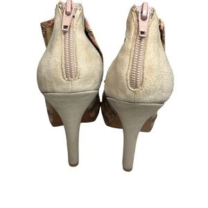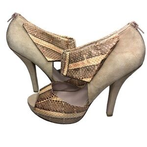 Tan Suede/Back heel Zipper/Snakeskin Print Accent/Tall Spiked Heel
