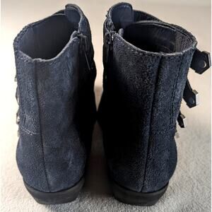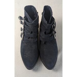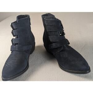 Kelsi Dagger Anthropology Blue Suede Buckle Pointed Toe Western Boots Size 8