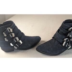 Kelsi Dagger Anthropology Blue Suede Ankle Pointed Toe Western Boots Size 8