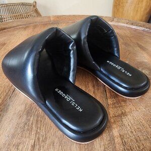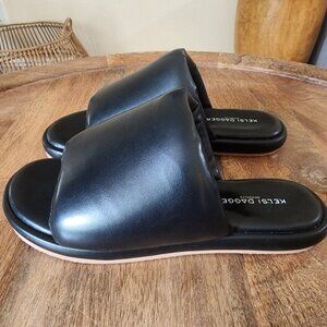 Kelsi Dagger Black Leather Brooklyn Traveler Slide Sandals Womens 7.5
