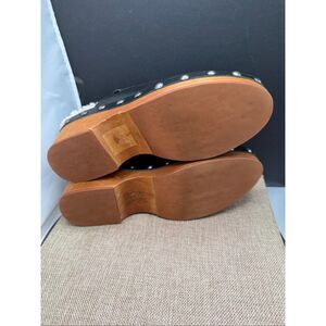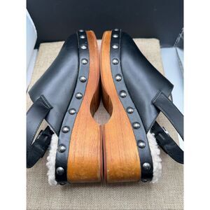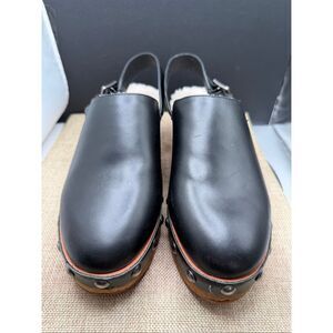 Chic black leather clogs with plush shearling lining. Perfect blend of style and comfort.