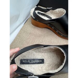 Kelsi Dagger Black Leather Clogs with Shearling