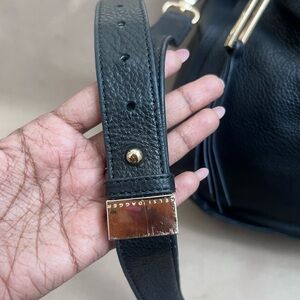 Kelsi Dagger Black Leather Handbag With Adjustable Crossbody Strap Gold Hardware