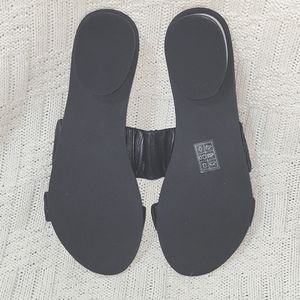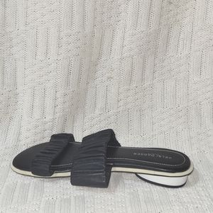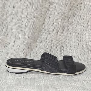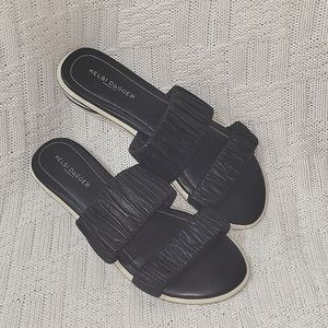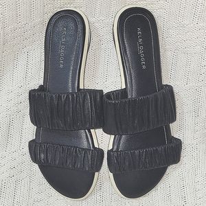 Kelsi Dagger Brooklyn Black Leather Ruched Slide Sandals Sz 10 M
