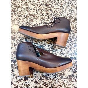 Kelsi Dagger Brooklyn North Ankle Boots Clogs. Leather lace closure. Wooden platform and block heel sole.