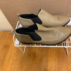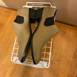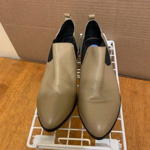 Ultra-low bootie with Chelsea-style goring inserts featuring stacked heel and rear pull tab
