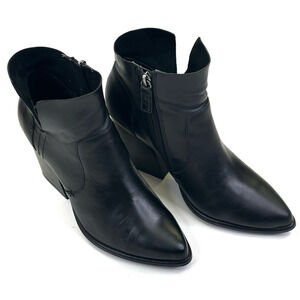 Kelsi Dagger Brooklyn Womens Black Leather Block Heels Ankle Boots Size 7.5