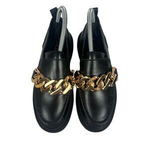 Kelsi Dagger Brooklyn Womens Black Leather Chain Loafers Size 6