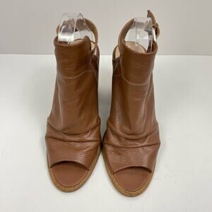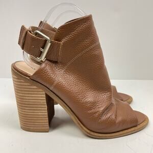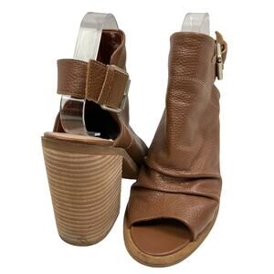 Kelsi Dagger | Brooklyn's Metro Light Brown Leather Block Heel Peep Toe Shooties