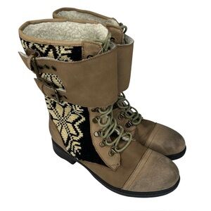 Kelsi Dagger Brown Ilya Womens Leather Block Heel Size 8 Mid Calf Sherpa Boots