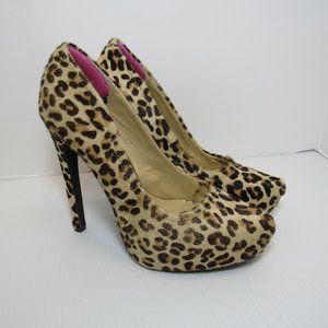 Women's Kelsi Dagger size 7 Brette calf hair animal print platform high heel stilettos. Great pumps! Slight wear to outside of shoes from normal use. On the inside there are a few wear/cracks in the material - this does not take away from the beauty or functionality of the shoe. Fast shipping. Thanks for looking. Heel height: 5.5"