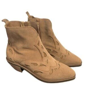 Unleash your inner cowgirl with these fabulous camel suede western-style ankle boots. The delicate cutout patterns and soft suede texture blend to create a boot that’s as stylish as it is comfortable. Perfect for pairing with your favorite denim or a casual dress for a touch of down-home glamour on your everyday outings.
