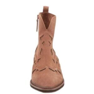 Kelsi Dagger Cliff Mocha Brown Suede Pointed Toe Block Heel Western Ankle Boots