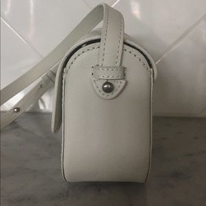"Assembly" in color "Ice". Perfect crossbody purse to complement any outfit! Long adjustable flat strap, flat top with push lock closure and optional key. Hand crafted using genuine leather and fabricated goods. Interior twill lining. Embossed Kelsi Dagger logo at front beneath flap. Unique and original. Imported. Must have for every closet!