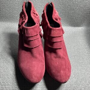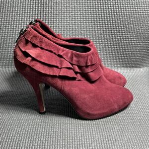 Kelsi Dagger Dorothy Booties Womens Size 8.5 Pink Suede Leather Ruffle Stiletto