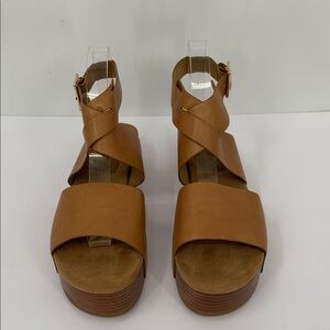Kelsi Dagger Dunes platform sandal brown leather ankle strap wide shoe new 9