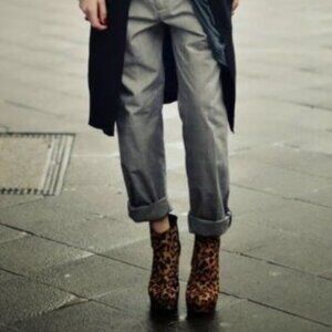 Kelsi Dagger Huette Wedge leopard black suede leather calf hair US 7.5 booties
