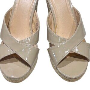 Kelsi Dagger Open Toe Patent Leather Criss Cross Strap Espadrille Wedge Size 8.5