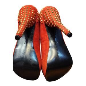 Great condition. Kelsi dagger red suede round toe gold studded back pumps size 8 5” heel with 2” platform. 100% leather upper. Would make a great statement piece!