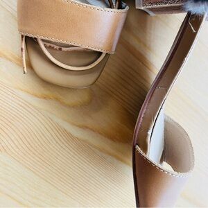 Kelsi Dagger Tan and Gray Heels with Chunky Heel and Ankle Straps
