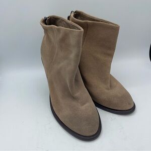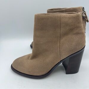 Kelsi Dagger Womens Size 8 Ankle Bootie Suede 4" Block Heel Tan Back Zip