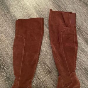 Instantly embolden your look with a dramatic over-the-knee boot crafted from supple suede and racked up on a chunky block heel to heighten the leggy allure.