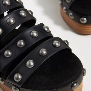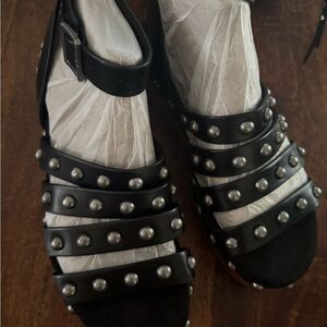 Kelsi Dagger Brooklyn Decoy Leather Sandals Platform Wedge Black Studded sz 8.5
