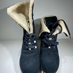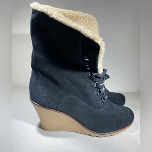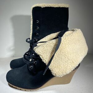 Kelsi Dagger Leather Suede Lace Up Wedge Boots Booties 10 M Black