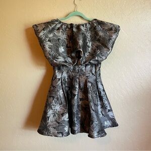 Kelsis Silver and Black Puff Sleeve V Neck Flutter Dress