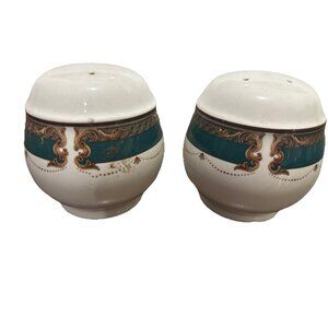 Keltcraft Noritake “Made In Ireland” Green & Gold Trim Salt/Pepper Shakers