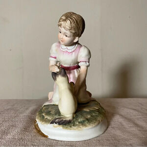 Super cute little vintage figurine in great condition! Includes a girl in a dress with her cat.