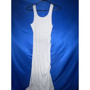 This Kelvin Klein dress is the perfect addition to your wardrobe. Ideal for any occasion, it comes in a beautiful gray color with a solid pattern. The dress has a sleeveless, strappy sleeve design and a long length, making it perfect for summer, fall, or spring.