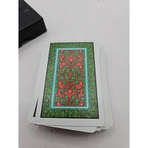 This playing card set is used and in good condition. I counted 47 cards total, missing several cards.