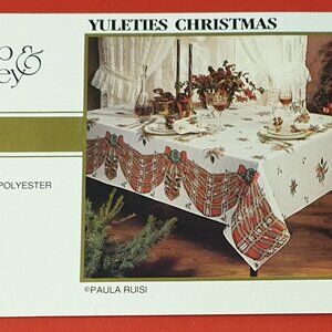 This is a beautiful Kemp & Beatley Yuleties Christmas tablecloth with style no 183. This tablecloth was made in America and a great addition for your holiday meal with family. Sent in Marshall Fields box.