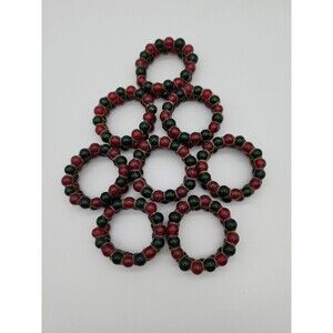 Kemp & Beatly set of 8 Christmas Red & Green Glass Beaded Napkin Ring Holders