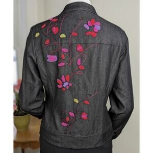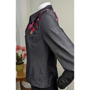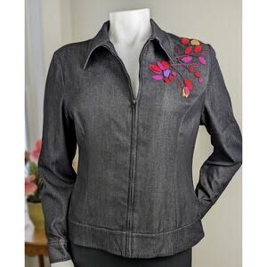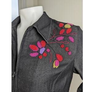 Kemp Collection Zipper Stretch Blazer Gray Embroidered Felted Flower Boho Size 6
