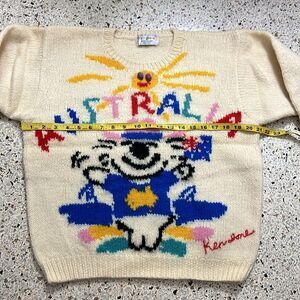 Vintage Ken Done for Rob Patnter hand knit art to wear koala 100% wool sweater medium m see measurements