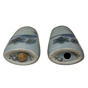 Handcrafted Ken Edwards El Palomar Mexican pottery salt and pepper shakers featuring a charming blue bird design. Perfect for adding a touch of artistry to your dining table or kitchen decor.