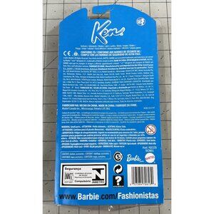 Enhance Ken's style with this elegant blue tuxedo outfit featuring a patterned shirt and rose accessory, designed for Barbie Fashionistas dolls.
