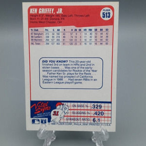Ken Griffey Jr., Mariners, 1990 Fleer, #513 Baseball Card