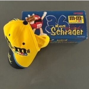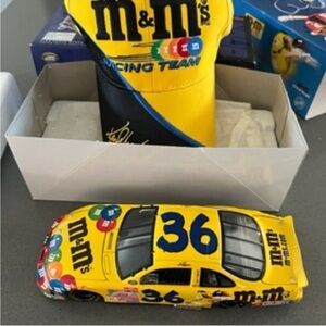 Limited edition NASCAR collectible set featuring Ken Schrader’s #36 M&M’s Racing Team 2000 1:24 scale diecast car plus original team cap.