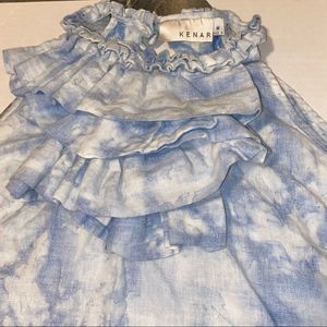 Kenar Abstract Cloud Print Ruffle Halter Racerback