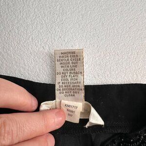 Kenar Beaded Collar Neck Black Short Sleeve Top S Elegant Style Smocked Stretch