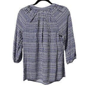 Kenar Blue Black white Patterned Blouse 3/4 Sleeve Elastic Cuff Women's Small