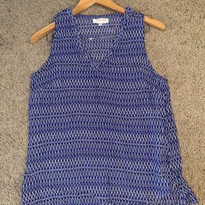 Kenar Blue Print Tank Top V-neck Sleeveless Blouse Size Medium