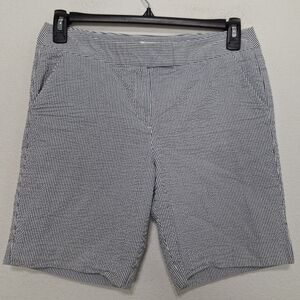 Kenar Blue White Slash Pockets Coastal Nautical Striped Bermuda Shorts Size 10