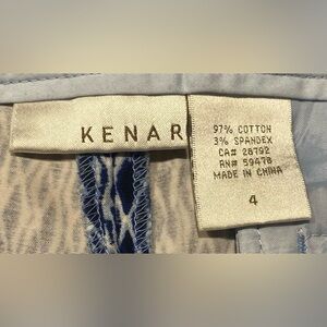 Kenar Blue and White Patterned Chino Shorts, Size 4, Cotton/Spandex